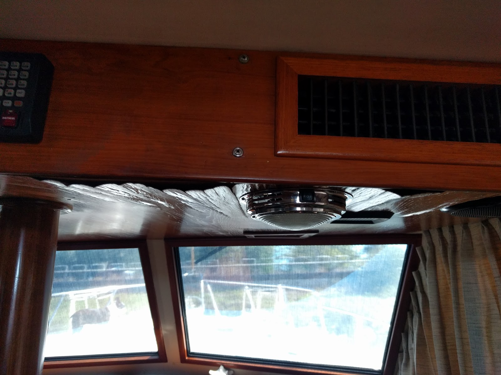 I was able to hang all the rest of the canvas today even with a late start this morning. The portside flybridge window is missing a zipper doodad though so it won't be able to be zipped tight until I figure out something.